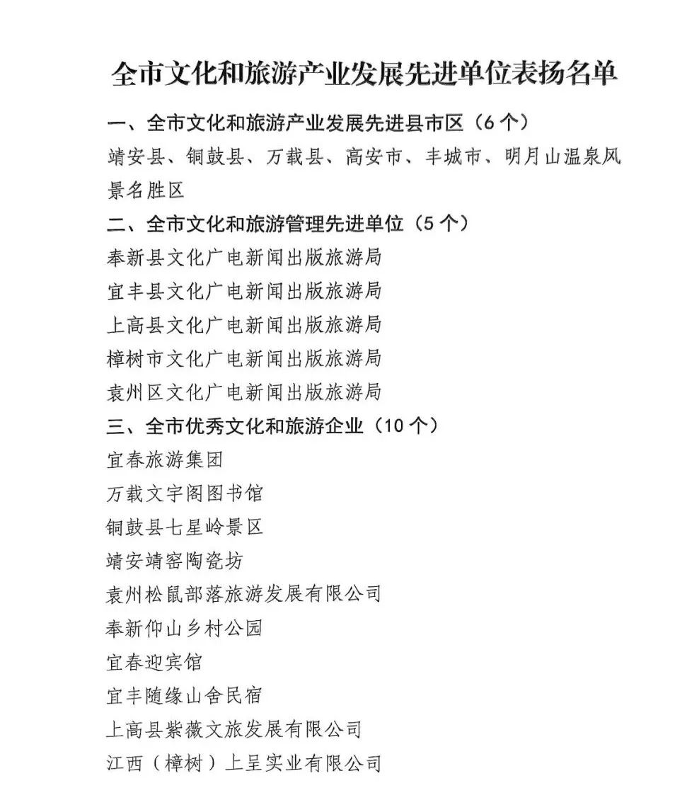 在市委、市政府的堅(jiān)強(qiáng)領(lǐng)導(dǎo)下,在市直各部門的大力支持和公司全體員工的共同努力下,宜春旅游集團(tuán)榮獲“全市優(yōu)秀文化和旅游企業(yè)”榮譽(yù)稱號,在11月7日全市文化和旅游產(chǎn)業(yè)發(fā)展大會上受到通報(bào)表揚(yáng)。