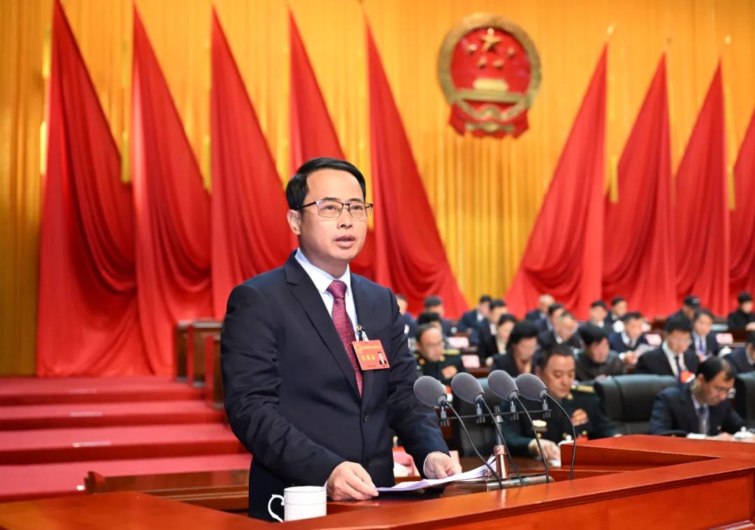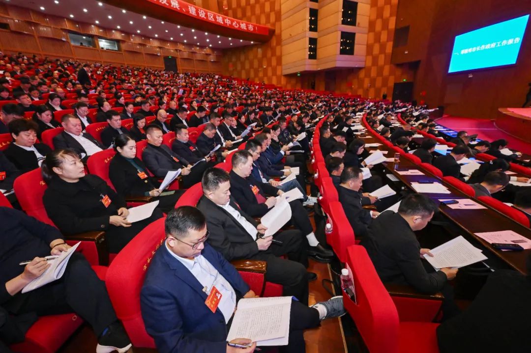在熱烈的掌聲中,譚贛明代表市人民政府向大會作政府工作報告。報告分三部分:一、2023年工作回顧;二、2024年工作安排;三、全面加強政府自身建設。