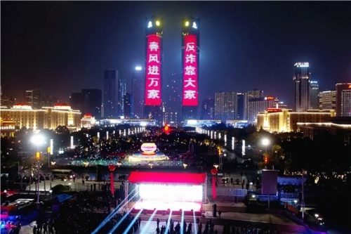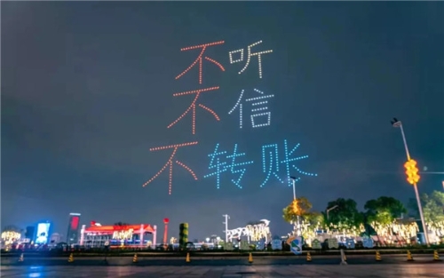 儀式結(jié)束后,一場以反電詐宣傳為主題的一江兩岸和無人機(jī)燈光秀在秋水廣場上演,吸引了廣大市民朋友駐足觀看、網(wǎng)絡(luò)轉(zhuǎn)發(fā),吹響了“春風(fēng)”行動(dòng)的號角。