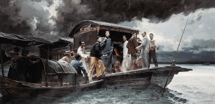下午5時(shí),天氣轉(zhuǎn)晴,湖面上一艘汽艇向畫(huà)舫急馳而來(lái)。大家因有上海的經(jīng)歷而提高了警惕,立即藏起文件,桌上擺出麻將牌,裝扮成游客。后來(lái)打聽(tīng)到這是當(dāng)?shù)厥考澋乃饺擞瓮?,大家才松了一口氣,?huì)議仍繼續(xù)進(jìn)行。