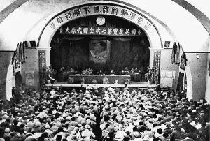 中國(guó)共產(chǎn)黨第七次全國(guó)代表大會(huì)于1945年4月23日至6月11日在延安楊家?guī)X中央大禮堂舉行。出席大會(huì)的共755人,其中正式代表547人,候補(bǔ)代表208人,代表著全黨121萬(wàn)名黨員。任弼時(shí)主持開(kāi)幕式,毛澤東致開(kāi)幕詞和閉幕詞,并作了《論聯(lián)合政府》的書面政治報(bào)告、關(guān)于形勢(shì)和思想政治問(wèn)題的報(bào)告、關(guān)于討論政治報(bào)告的結(jié)論和關(guān)于選舉的問(wèn)題的講話;朱德作《論解放區(qū)戰(zhàn)場(chǎng)》的軍事報(bào)告和關(guān)于討論軍事問(wèn)題的結(jié)論;劉少奇作《關(guān)于修改黨章的報(bào)告》和關(guān)于討論組織問(wèn)題的結(jié)論;周恩來(lái)在會(huì)上作《論統(tǒng)一戰(zhàn)線》的講話。毛澤東在《論聯(lián)合政府》的報(bào)告中,科學(xué)分析了國(guó)際國(guó)內(nèi)形勢(shì),抓住了當(dāng)時(shí)時(shí)局的關(guān)鍵,著重提出了中國(guó)人民強(qiáng)烈希望建立民主聯(lián)合政府,打敗日本侵略者,建設(shè)新中國(guó)的基本要求。他號(hào)召全黨要發(fā)揚(yáng)黨的理論和實(shí)踐相結(jié)合的作風(fēng),和人民群眾緊密地聯(lián)系在一起的作風(fēng)以及批評(píng)與自我批評(píng)的作風(fēng)。圍繞上述報(bào)告,各代表小組、代表團(tuán)進(jìn)行了充分討論。任弼時(shí)、陳云、彭德懷、張聞天、陳毅、葉劍英、楊尚昆、劉伯承、彭真、聶榮臻、陸定一、烏蘭夫等20多人作了大會(huì)發(fā)言。這些報(bào)告和發(fā)言從各個(gè)方面論述黨的政治路線、軍事路線、組織路線的基本精神,總結(jié)黨的歷史經(jīng)驗(yàn),并對(duì)各條戰(zhàn)線的任務(wù)和政策提出了具體意見(jiàn)。大會(huì)一致通過(guò)了毛澤東的政治報(bào)告、朱德《論解放區(qū)戰(zhàn)場(chǎng)》的軍事報(bào)告和劉少奇修改黨章的報(bào)告及新黨章。