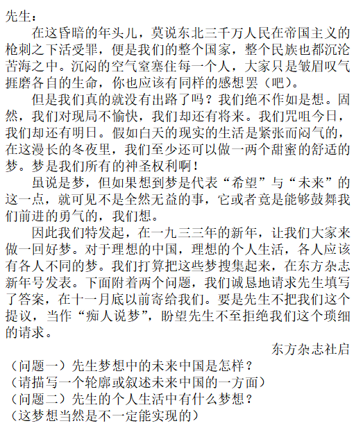 1933年的元旦,《東方雜志》推出了一期“新年特號”,名為“新年的夢想”。