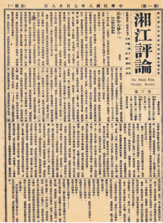 青年毛澤東在《<湘江評論>創(chuàng)刊宣言》中寫道:“時機(jī)到了!世界的大潮卷得更急了!洞庭湖的閘門動了,且開了!浩浩蕩蕩的新思潮業(yè)已奔騰澎湃于湘江兩岸了!順?biāo)纳?,逆他的死。?/span>