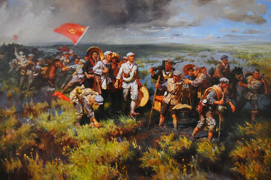 八十多年前的一個夜晚,夜幕籠罩著無邊無際的草地,簇簇篝火映著一群又一群饑餓難耐的紅軍指戰(zhàn)員。萬籟俱寂的草地夜空,突然飛來用法語演唱的《馬賽曲》的歌聲。循著歌聲,只見一位颯爽的女紅軍正面對夜空縱情歌唱《馬賽曲》。徐特立、成仿吾等受到《馬賽曲》的感染,請不自己地站起,應(yīng)和起來。毛澤東循著歌聲走到近前,他駐步靜靜地傾聽?!恶R賽曲》的歌聲終止了,但草地的夜空依然余音不絕。毛澤東說“好!唱得好!”帶頭鼓起了掌,“同志們!我從你們的歌聲中不僅感到了力量,忘記了饑餓,而且還看到了中國革命最美好的希望!”