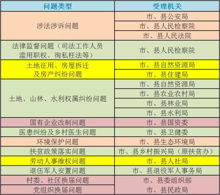 備注:以上各條未列入的問(wèn)題,均按來(lái)信來(lái)訪人員反映問(wèn)題的性質(zhì)和所屬系統(tǒng)分別由有關(guān)主管部門(mén)歸口處理。