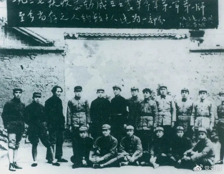 1927年9月9日,以毛澤東為書記的中共湖南省委前敵委員會,領(lǐng)導(dǎo)工農(nóng)革命軍第一師發(fā)動湘贛邊界秋收起義。圖為毛澤東在延安和當(dāng)年參加秋收起義的部分同志合影。