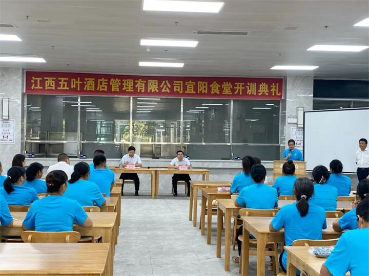 宜春旅游集團(tuán)轄屬江西五葉酒店管理有限公司宜陽(yáng)食堂開(kāi)業(yè)在即,為規(guī)范從業(yè)人員服務(wù)操作,提高項(xiàng)目管理水平,增強(qiáng)安全防范意識(shí),根據(jù)籌備組工作部署,8月26日上午,開(kāi)訓(xùn)典禮活動(dòng)在宜陽(yáng)東食堂如期舉行,受宜春旅游集團(tuán)黨委委員、董事、副總經(jīng)理陽(yáng)磊委托,宜陽(yáng)食堂籌備組左建群主持開(kāi)訓(xùn)典禮,食堂籌備組成員、勞務(wù)外包單位負(fù)責(zé)人以及招聘人員共計(jì)50余人參加了典禮儀式。