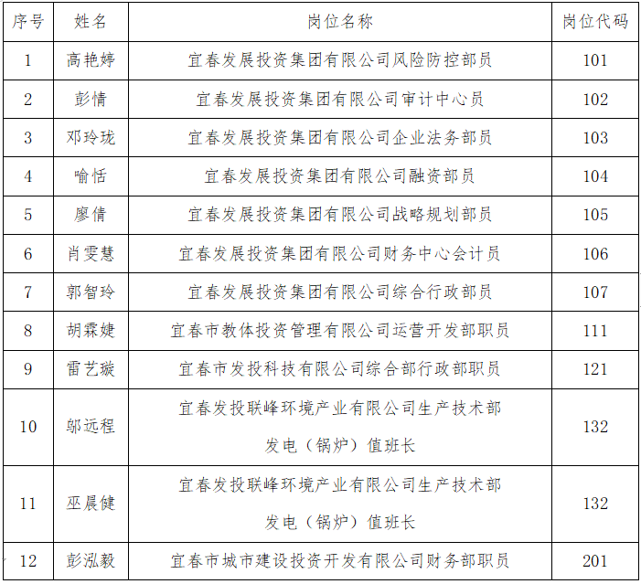 2022年宜春市國資委市屬國有企業(yè)招聘高校應屆畢業(yè)生擬聘用人員公示