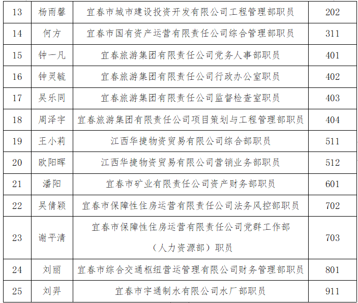 根據(jù)《2022年度市屬國有企業(yè)招聘高校應屆畢業(yè)生公告》精神,經(jīng)過報名、資格審查、筆試、面試、體檢、背景調查等程序,現(xiàn)將25名擬聘用人員公示如下: