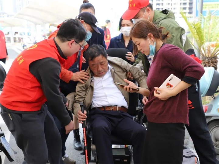 在前往高鐵站開展學(xué)雷鋒志愿活動(dòng)途中,突遇一名外地旅客突發(fā)身體不適,全身無力癱倒在地,志愿者們見狀趕忙一起將老人攙扶至陰涼處,為老人服下速效救心丸,并關(guān)切地詢問老人是否有過往病史,身體具體有哪些不適。并迅速聯(lián)系高鐵站服務(wù)人員推來輪椅,緩解老人的不適。與此同時(shí),志愿者們一方面協(xié)助通知遠(yuǎn)在上海的老人家屬,一方面提醒隨行人員撥打120急救電話,將老人移交給前來的醫(yī)護(hù)人員接收后才放心離去。