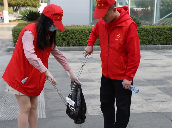 志愿者們進(jìn)行景區(qū)衛(wèi)生維護(hù)