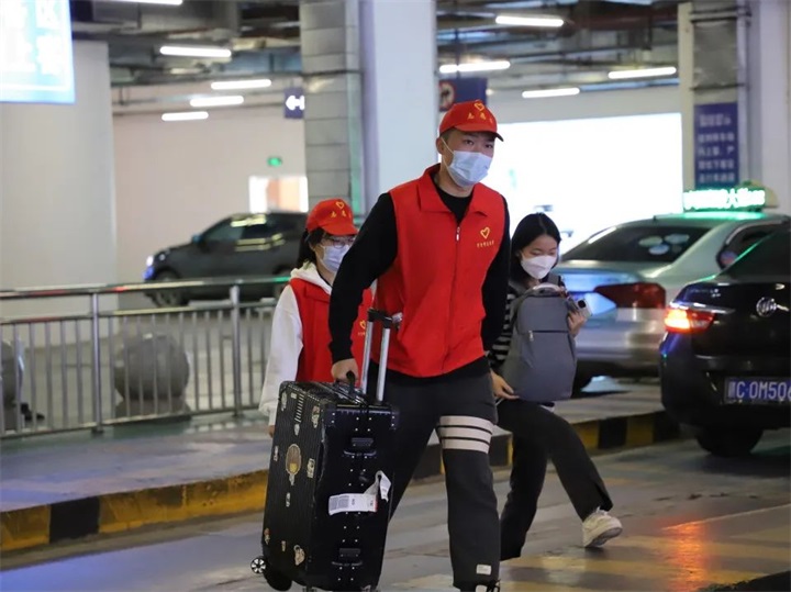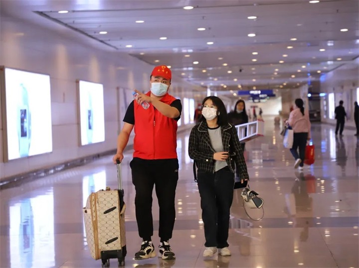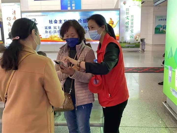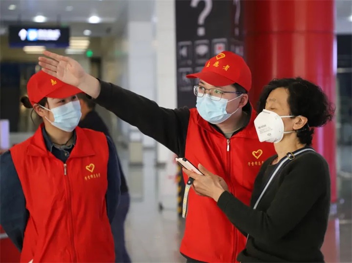 志愿者們幫助旅客順利出行