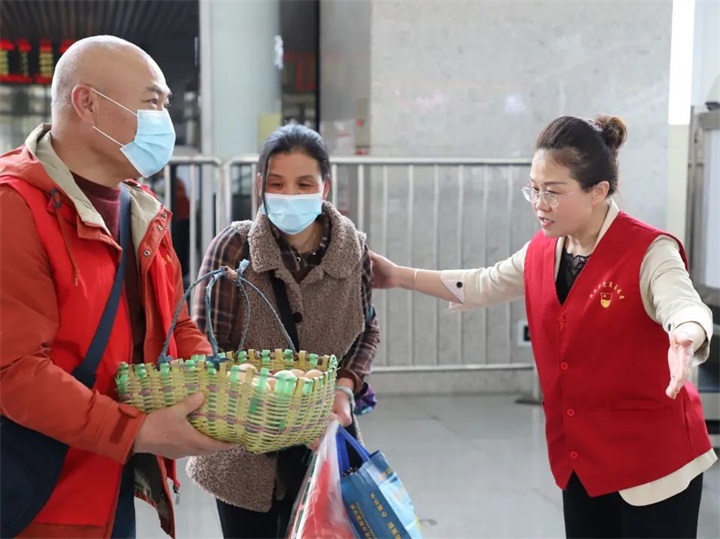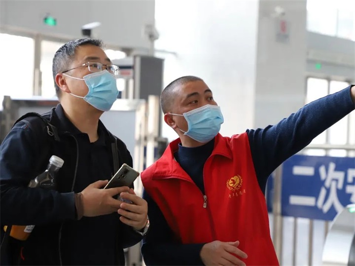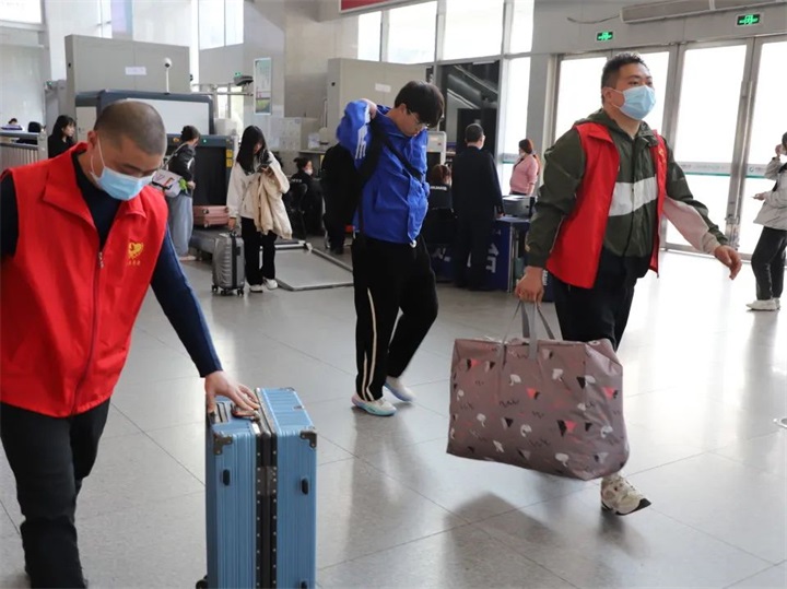 正值旅客往返高峰期,趕時(shí)間成為旅客出行的一大難題。在候車廳與旅客進(jìn)站區(qū),志愿者們不辭辛苦為旅客提拉行李,指引進(jìn)站路線,提高了旅客乘車效率,也保障了旅客出行安全。