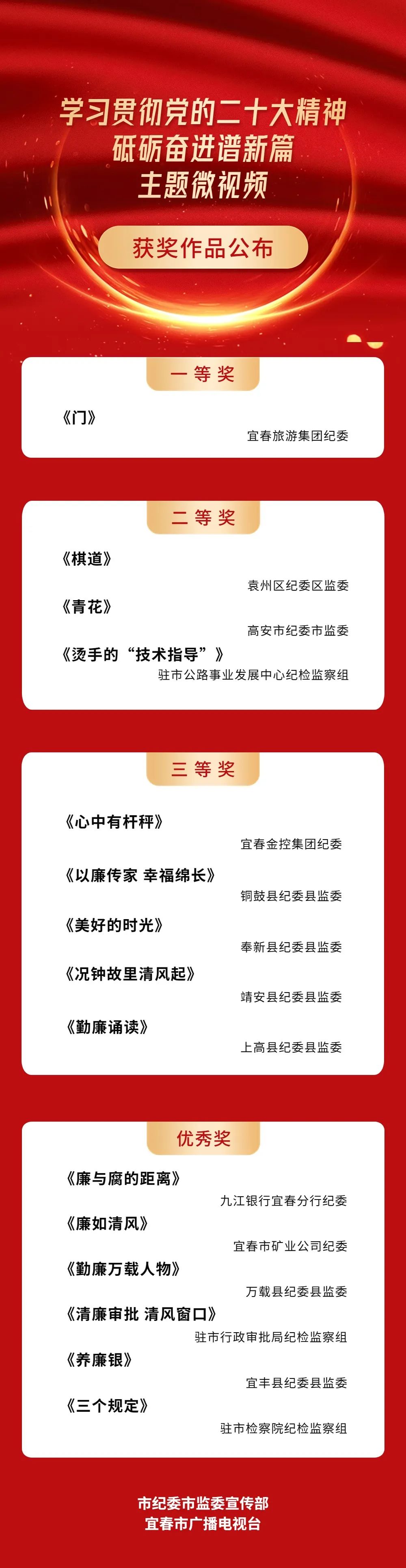 活動(dòng)開展以來,全市各級(jí)紀(jì)檢監(jiān)察機(jī)關(guān)和黨員干部積極參與、踴躍投稿。前不久,委宣傳部、組織部、調(diào)研法規(guī)室會(huì)同宜春廣播電視臺(tái)、宜春日?qǐng)?bào)社有關(guān)專家領(lǐng)導(dǎo)對(duì)征集作品進(jìn)行了聯(lián)合評(píng)審,現(xiàn)將獲獎(jiǎng)名單公布如下: